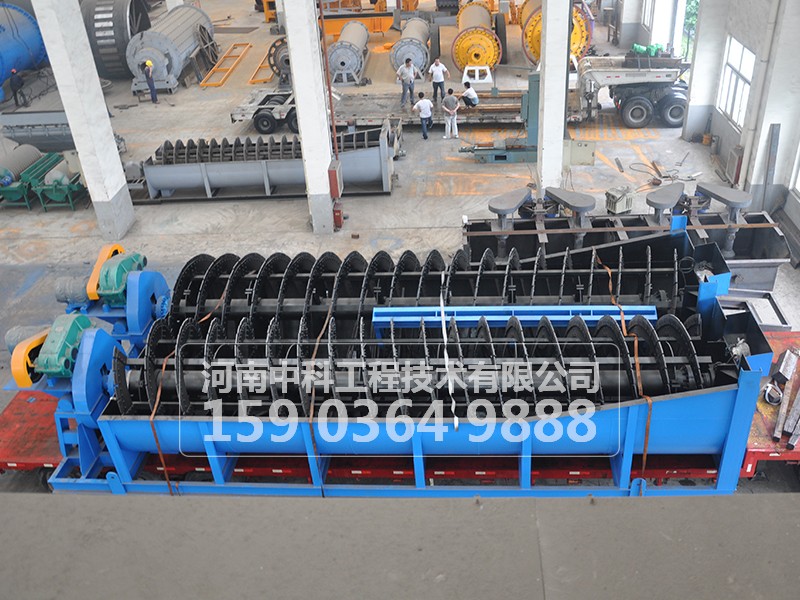 螺旋分級(jí)機(jī)分為:?jiǎn)温菪旨?jí)機(jī)、雙螺旋分級(jí)機(jī)。螺旋分級(jí)機(jī)根據(jù)溢流端的螺旋葉片浸入溢流面深淺程序不同,可制成下列二種: